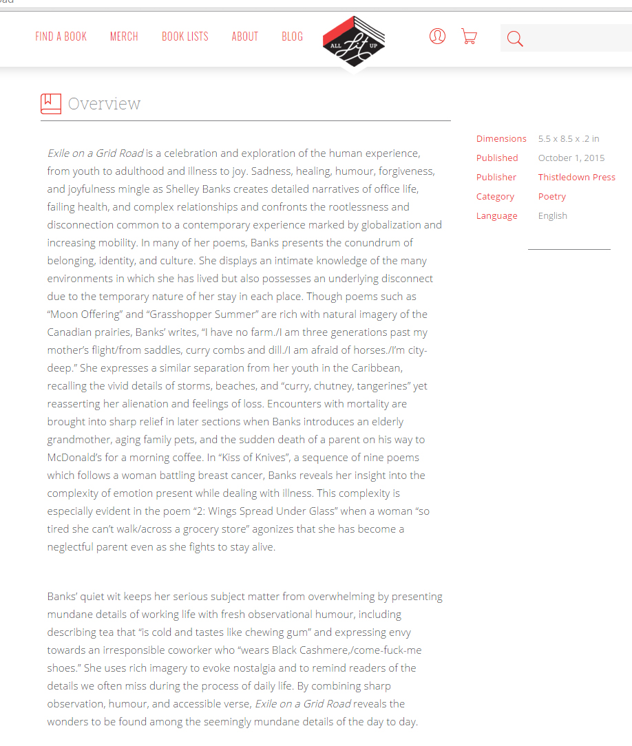 Exile on a Grid Road, on All Lit Up. Click to open and read the larger screen shot about this poetry collection.